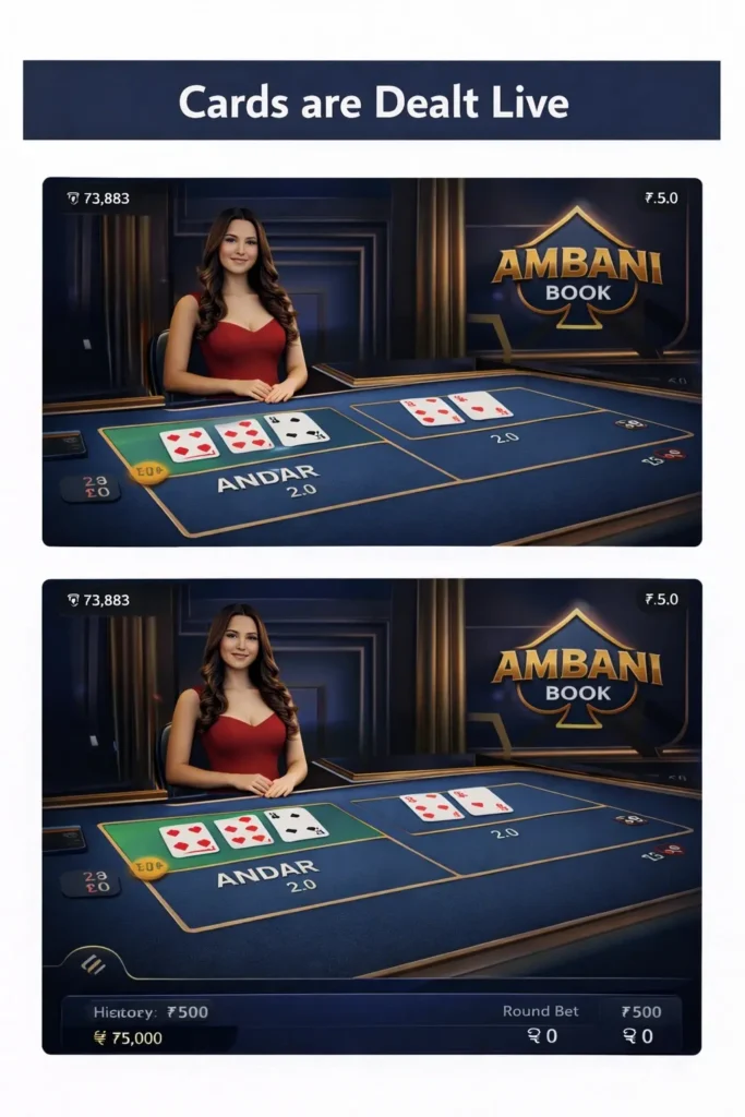 Yes. Ambani Book uses live dealers and transparent dealing processes to ensure fairness. Every round is streamed in real time, and all outcomes are random and unbiased.
